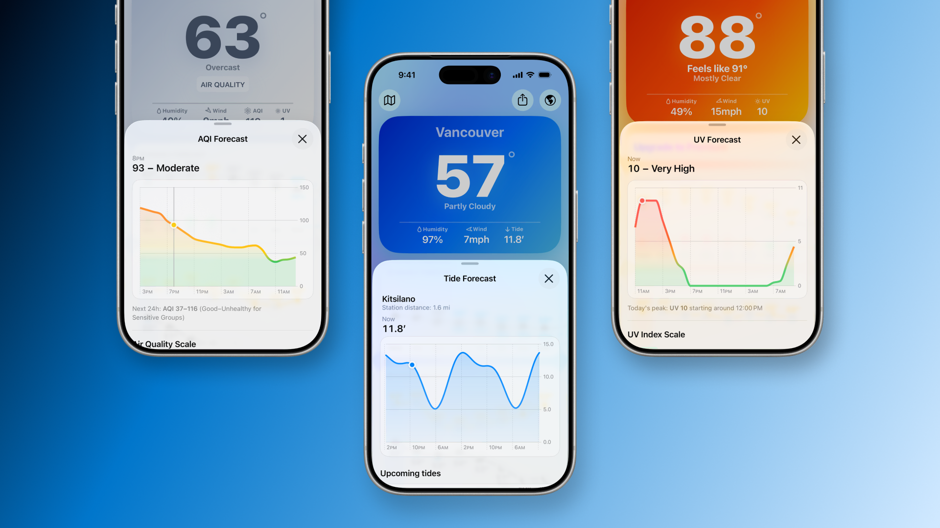 This release introduces hurricane tracking, along with new daily weather details, including 24-hour forecasts for air quality, UV, and 48-hour tide charts.