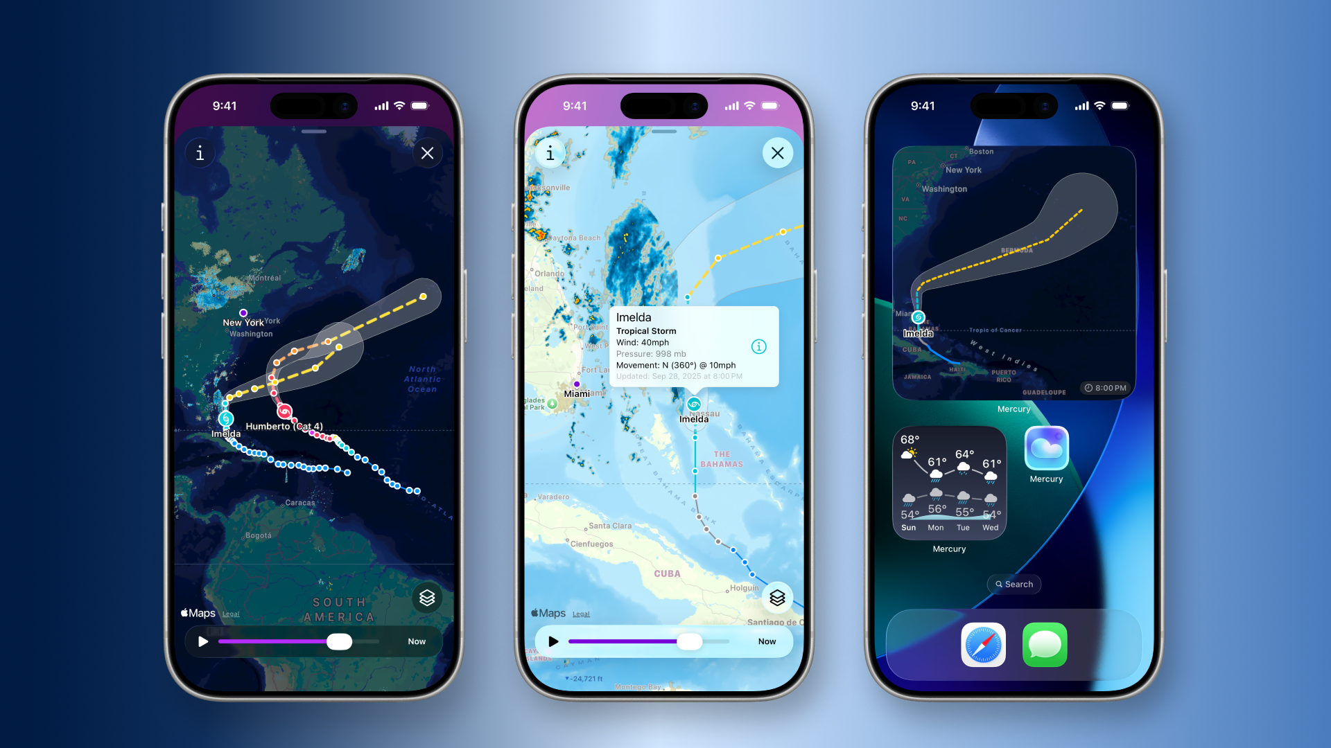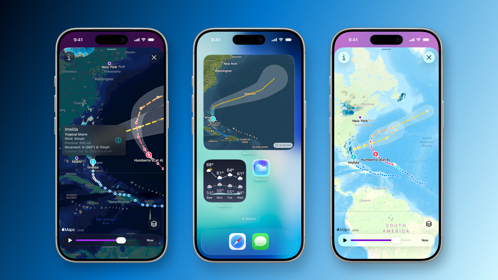 - Hurricane Widgets: This update also added a new hurricane widget. Users can choose to either track a specific storm live or monitor the closest storm in a selected basin (Atlantic, Pacific, or both).