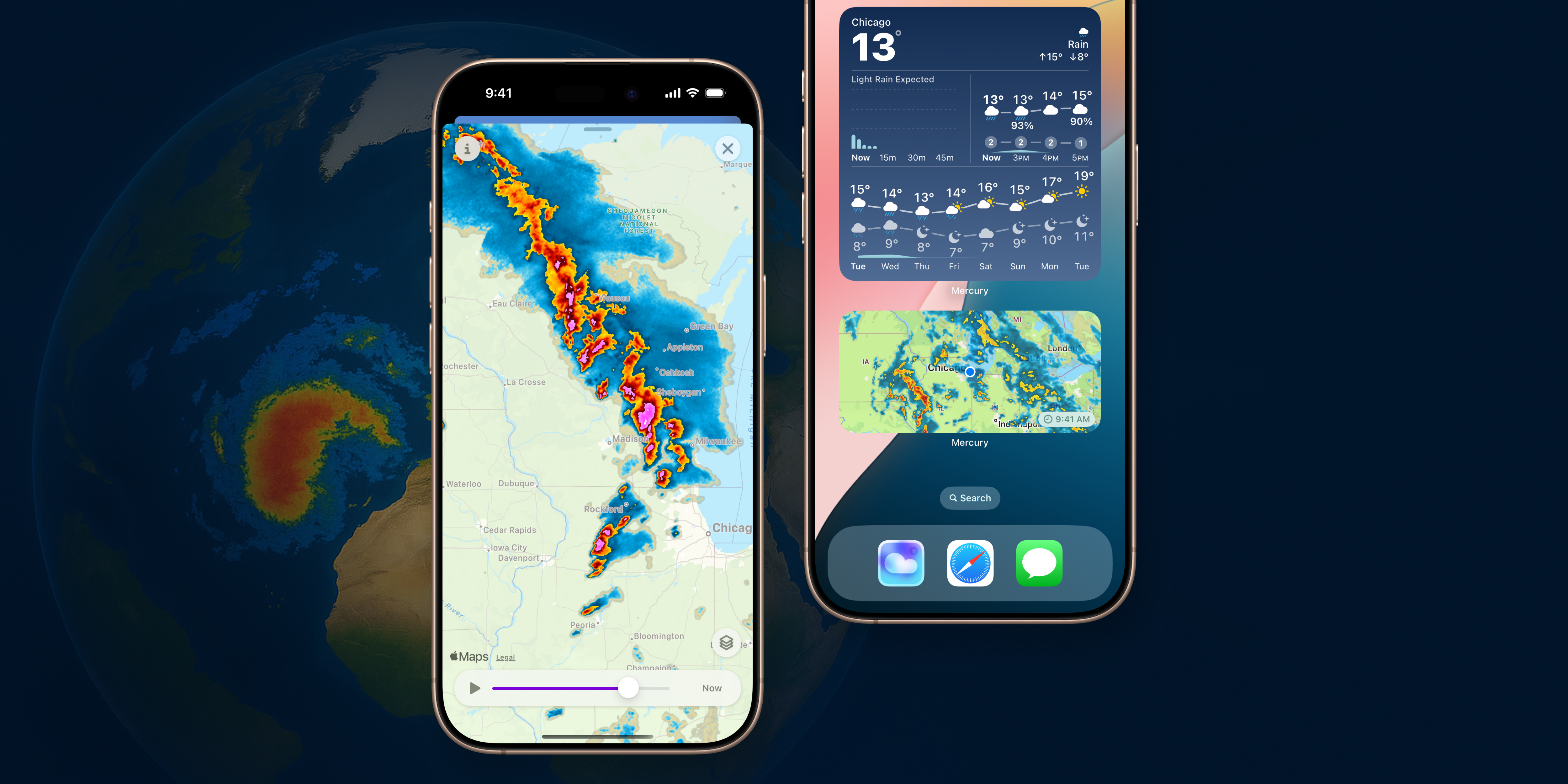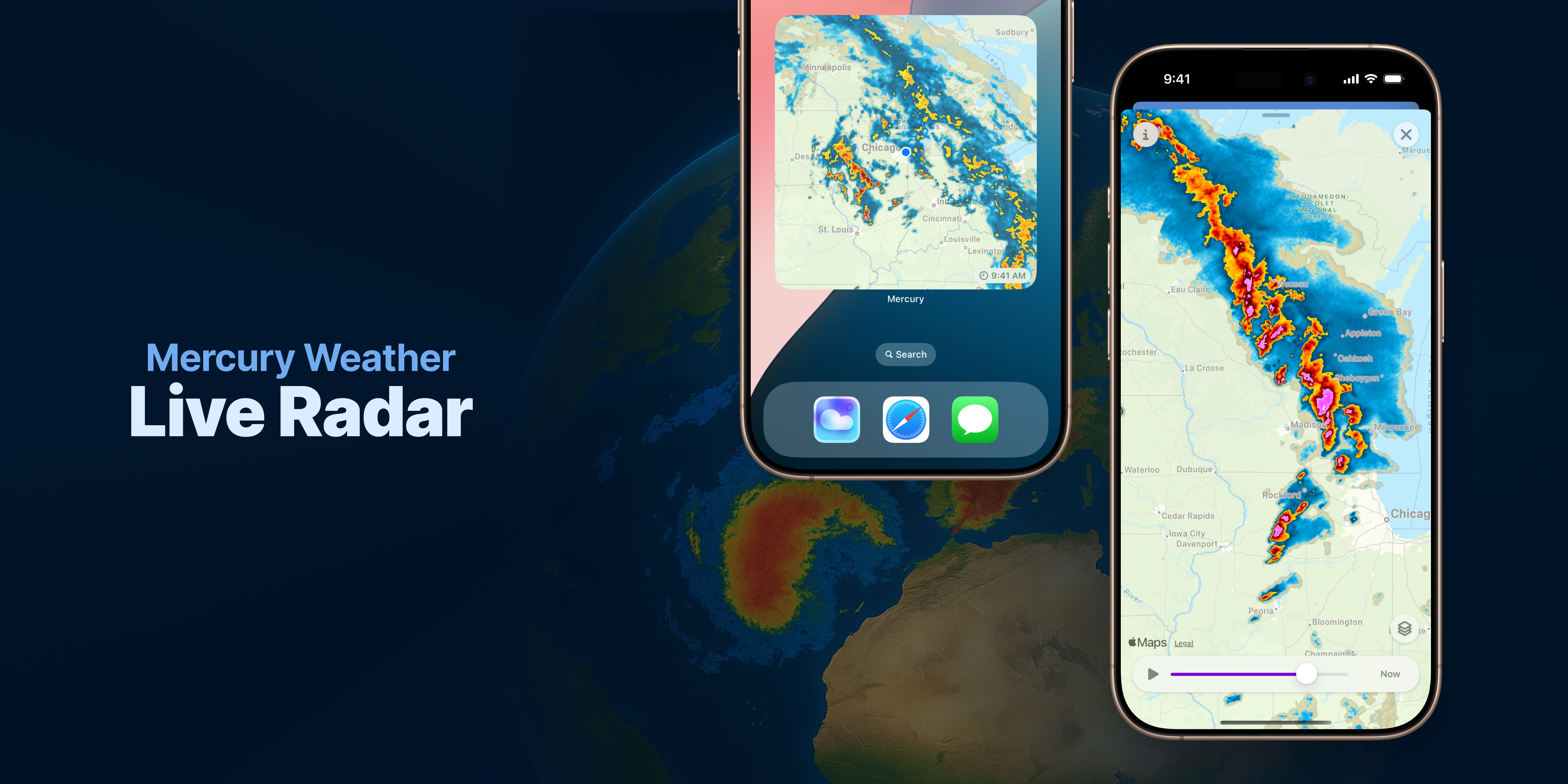 - Radar: This update introduces our most requested feature, Radar. Alongside all the essentials of a radar map, the Mercury radar incorporates other features from the app to give it its own look and feel. The live radar shows real-time maps with radar and weather layers, perfect for people wanting extra insights by looking at radar and precipitation movement throughout the day. This is great if you're planning a day outside, or a road trip, and considering different routes.