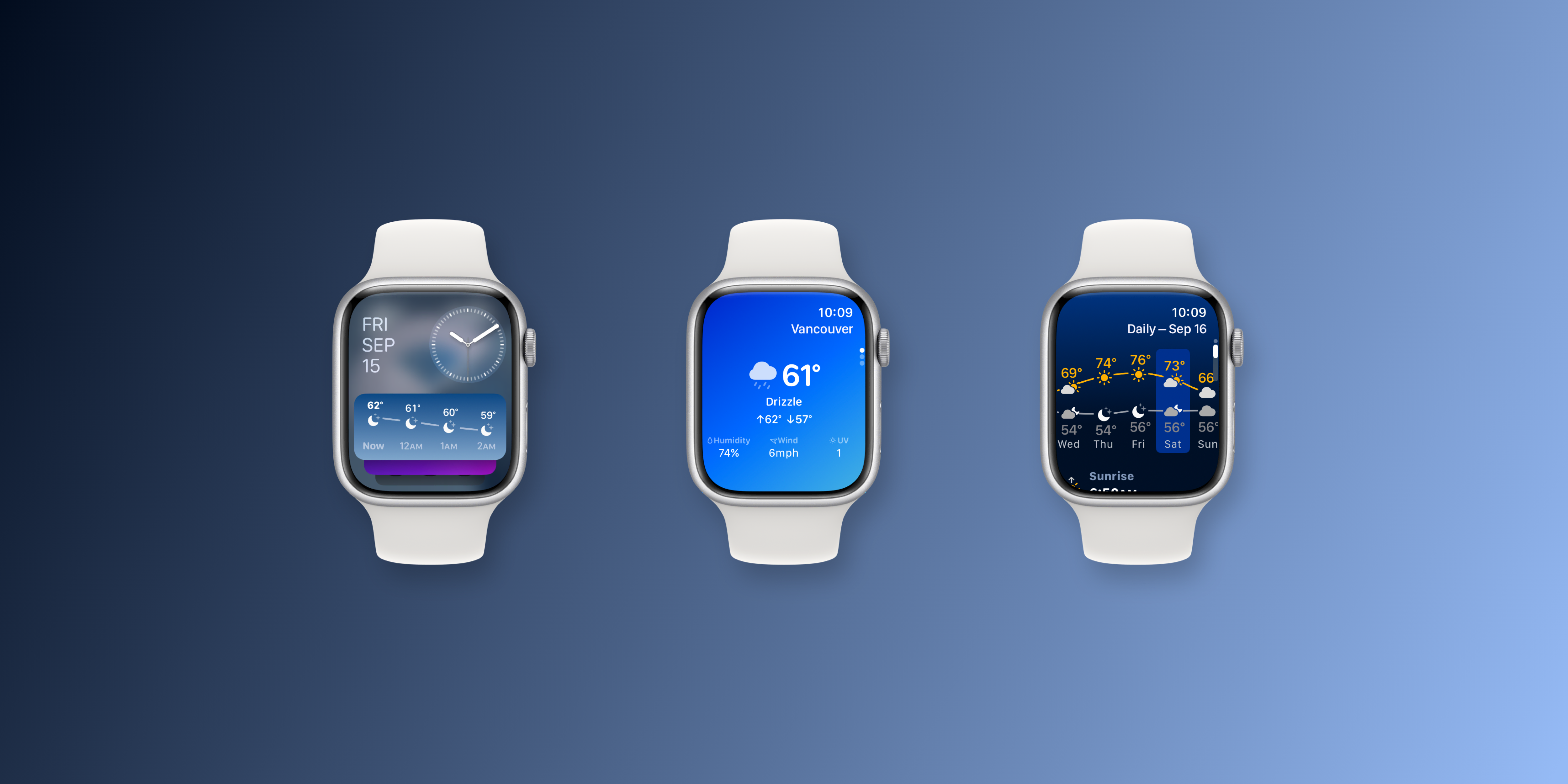 - New Complications: We also added a bunch of complications that have been requested for a while (finally!). AQI, UVI, and Humidity are all available now (even if you're not ready to update to watchOS 11 just yet).